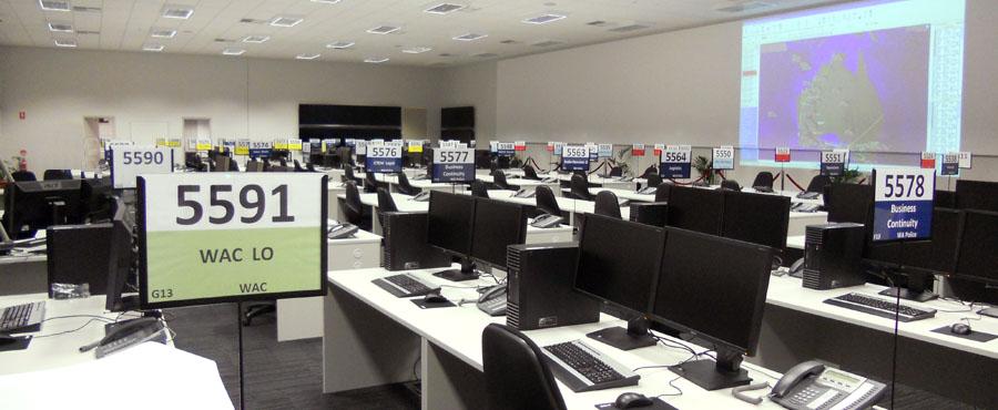The Command Centre itself comprised of 450m2 of main floor space focusing in on a 25m long projection screen where WA Police were able to monitor the entire city 24 hours of the day. Connected to the main floor were a Boardroom, Briefing Room, Office Space and Alfresco Dining Area where temporary ablutions and dining facilities were supplied for the duration of CHOGM. It was decided early on in the project that the Command Centre would be a permanent Operations Centre and now that CHOGM is over the space is continuing to be utilised by WA Police.